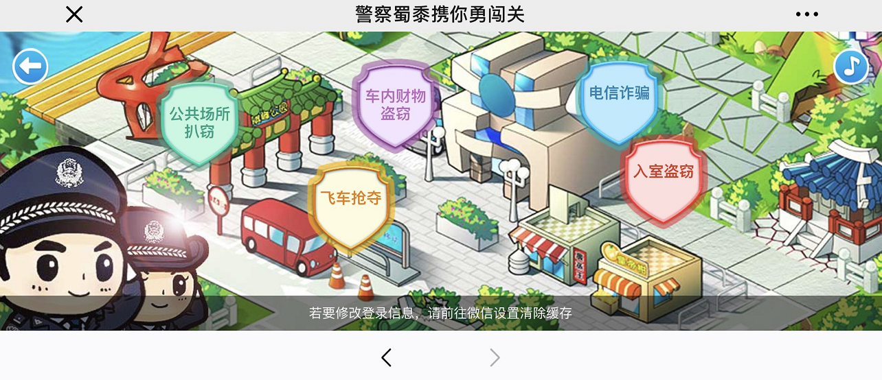 游戏分为五个主题,分别是车内财物、电信诈骗、飞车抢夺、公共场所和入室盗窃。
