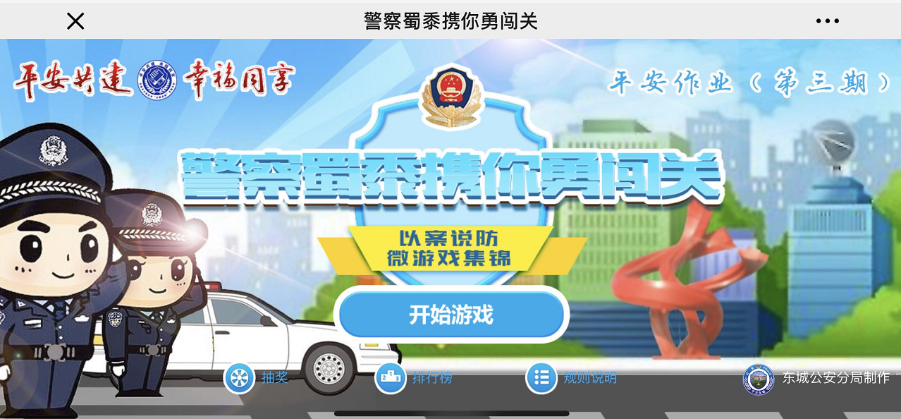 基于东莞东城庞大的小学生群体,围绕寒假平安的话题,东莞东城公安局联合快创科技,对闯关游戏H5进行修改并更新迭代,把游戏和抽奖结合起来,突出“作业是打游戏,赢了还有大奖”的理念,吸引学生的兴趣,并在游戏的过程中大大提高安全意识。